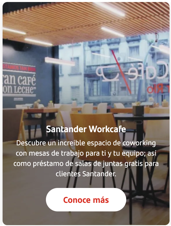 Con Santander lo tienes todoBeneficios, seguridad y la confianza de un banco responsable. Desde México(55) 9816 1114 Desde el extranjero+52 (55) 9816 1114